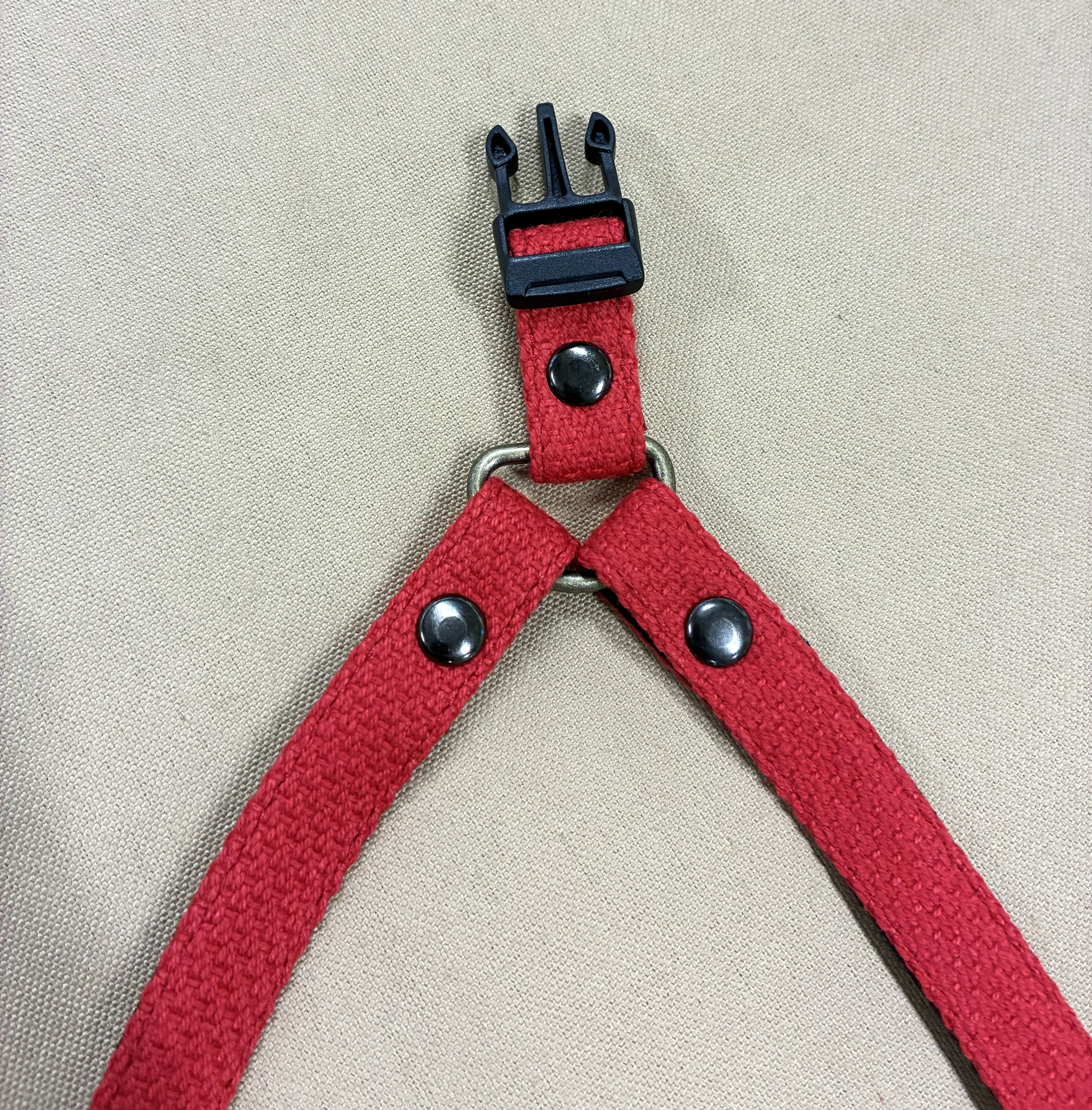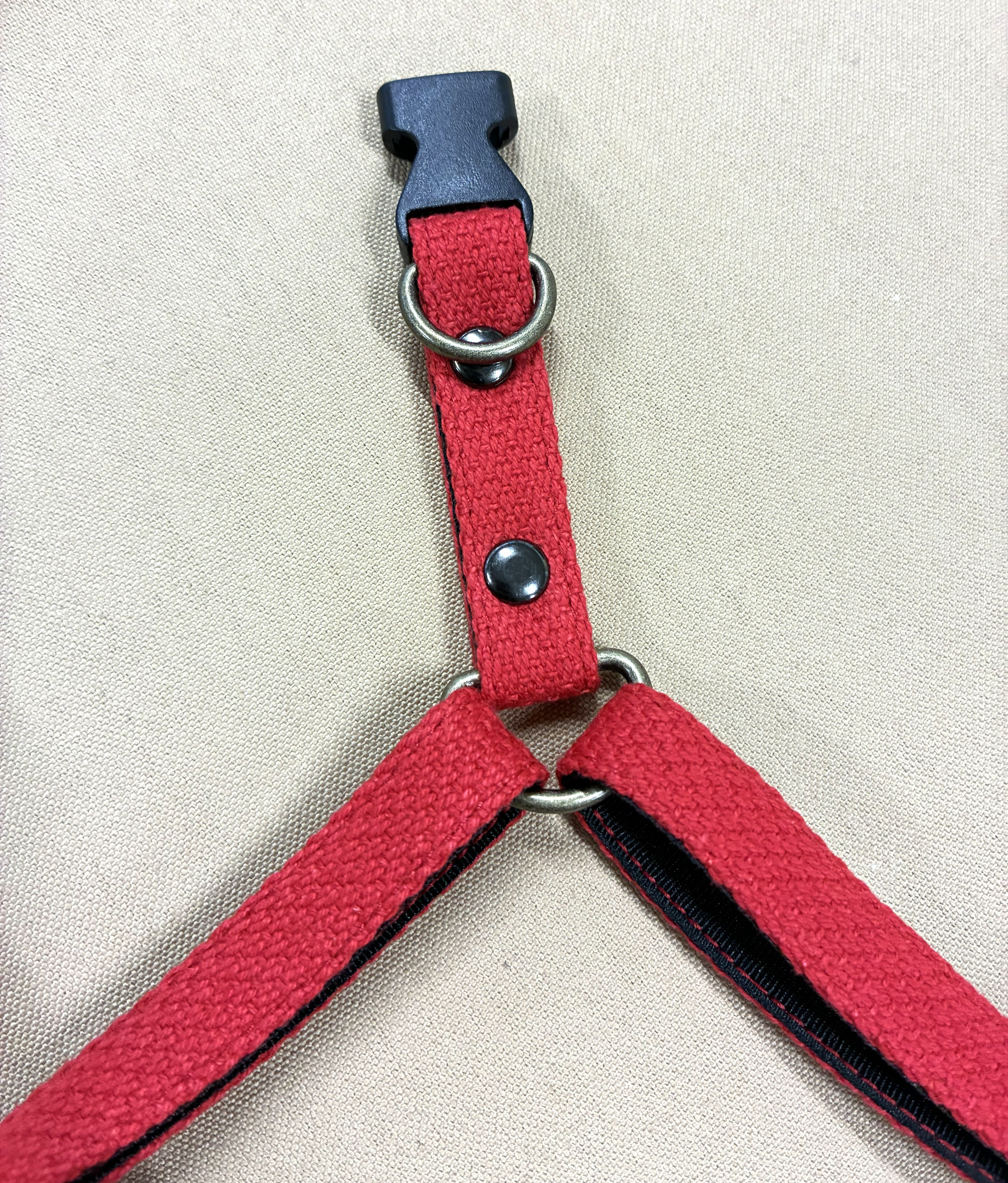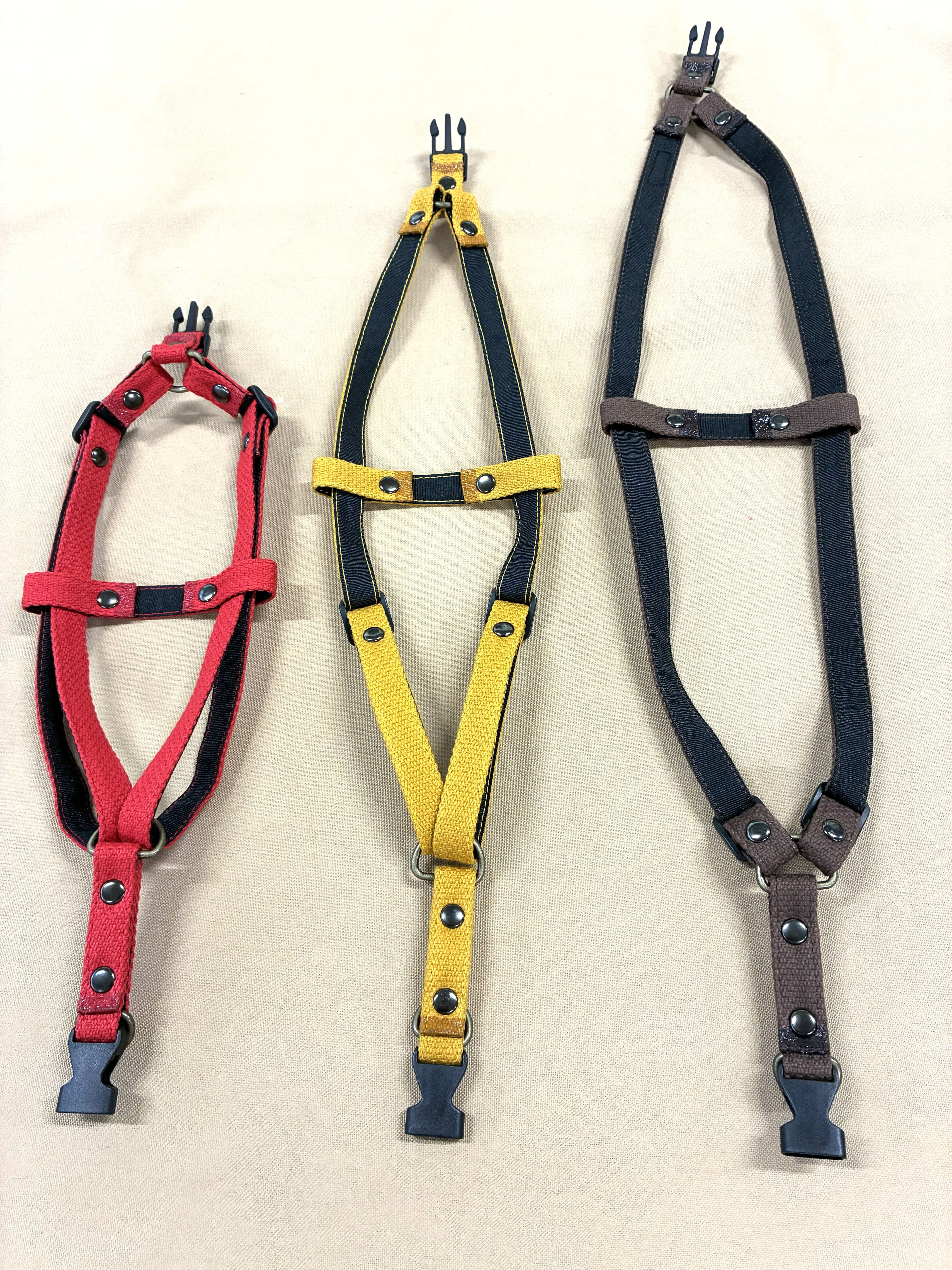 丈夫な帆布素材を使用した「帆布のハーネス」は、中型犬や小型犬に最適なシンプルなデザインが特徴です。愛犬とのお散歩を快適にサポートするためにデザインされています。