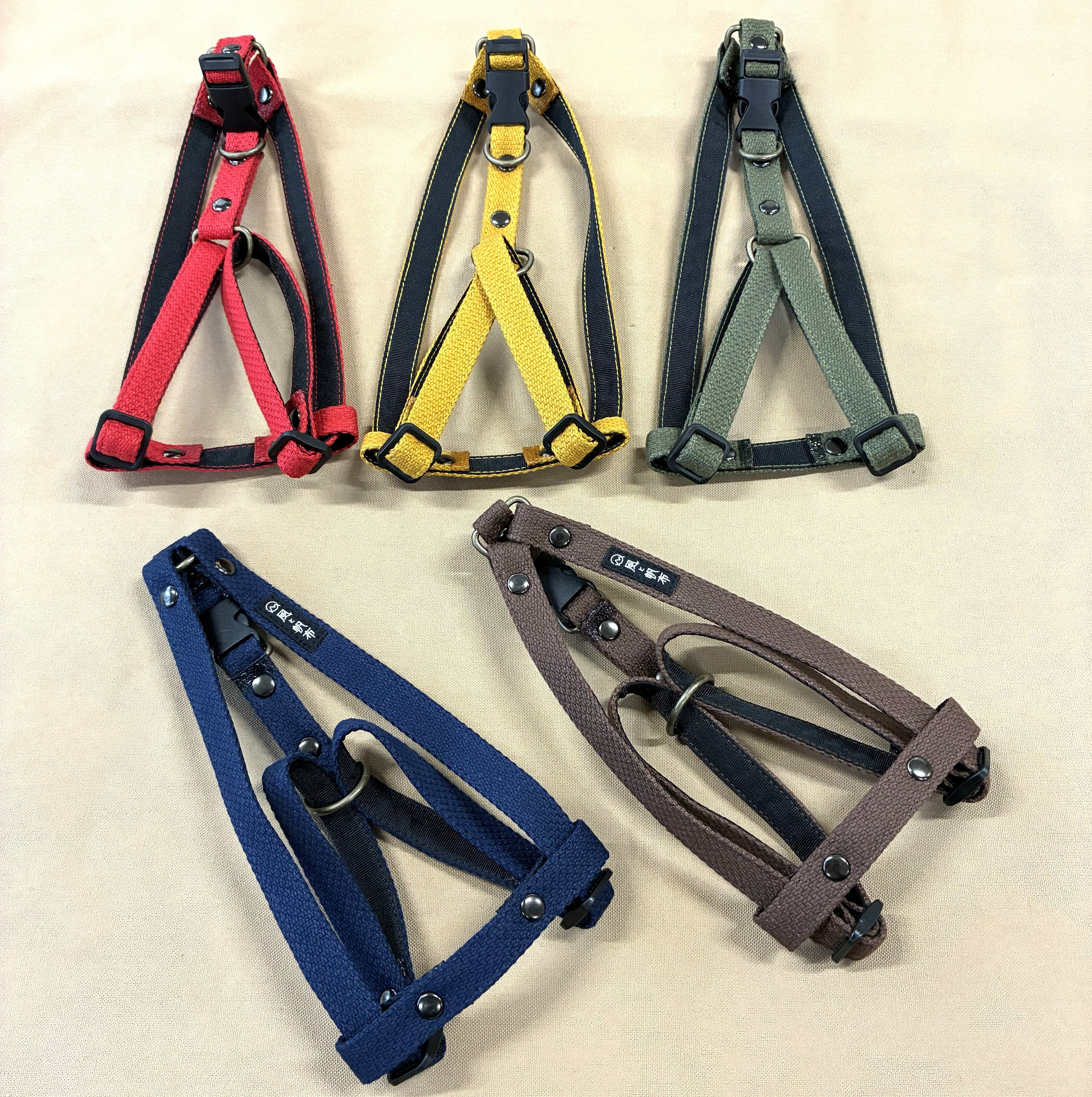 カラー、リード、ハーネスは同じ色で5色をご用意。コーディネートをお楽しみください♪